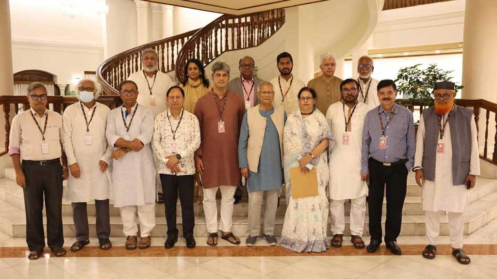 ক্ষোভ-বিক্ষোভের মধ্যে চার দলের সঙ্গে বৈঠকে 'ঐক্য' চাইলেন ইউনূস